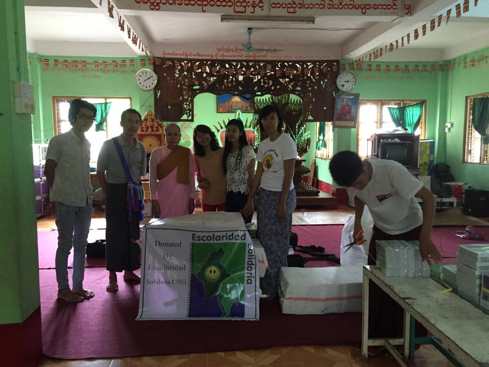 El pasado 24 de octubre se hicieron las donaciones del material escolar a otras dos de las 11 escuelas que tenemos este año. Han sido a Sanda Yama Monastic School formada por 430 niños y niñas y a Metta Sitagu School of Nunnery formada por más de 280 niños y niñas. Esta ultima escuela Metta Sitagu Schooll y Nunnery es la primera vez que entra en nuestro proyecto y sus profesores/as mostraron su gran satisfacción y desahogo al saber que a partir de ahora iban a recibir la ayuda que tanta falta les hace. Los niños y niñas, ni que decir tiene, que gozaron de una inmensa alegría.